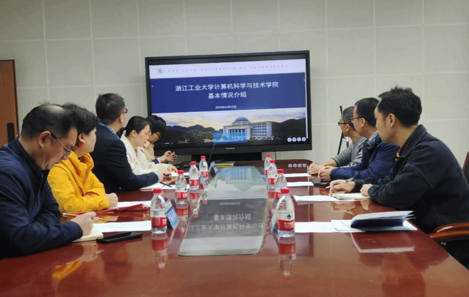2025年4月3日上午,胡众义副院长一行4人赴浙江工业大学调研学习。浙江工业大学计算机科学与技术学院院长孔祥杰及相关部门负责人热情接待调研学习组一行。孔祥杰院长介绍了beat365在线唯一官网,师资力量、学科建设、科学研究等方面情况。龙胜春教授介绍了学校人工智能通识课程的整体情况。徐新黎教授介绍了理工类人工智能通识教育以Python+AI为主,并以人工智能与绿色制药课程为例讲解了理工类人工智能专业课程建设。毛科技教授介绍了文史类人工智能通识教育以计算机应用基础+AI为主,围绕智能办公开展教学。双方就人工智能通识课程思政、教学方法、考核方式等进行了深入交流。