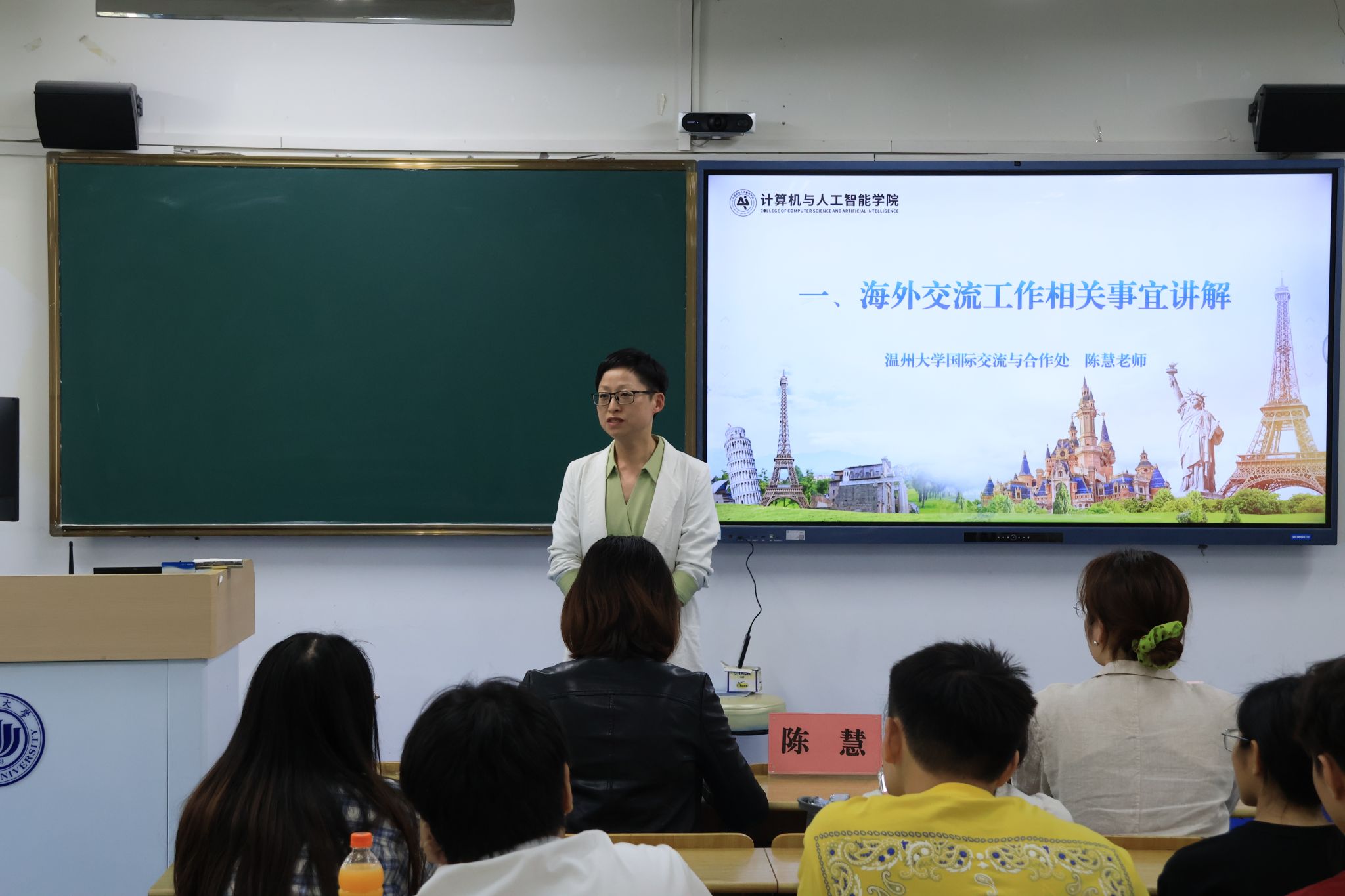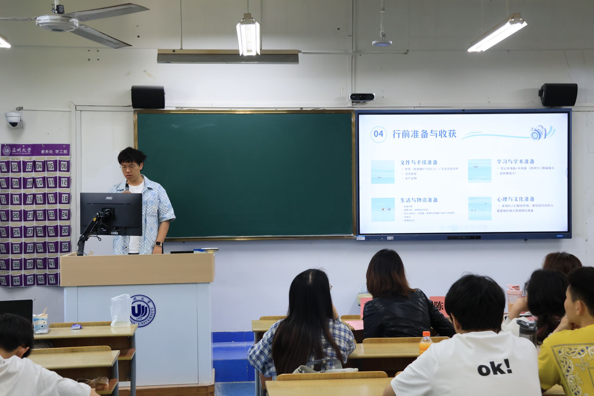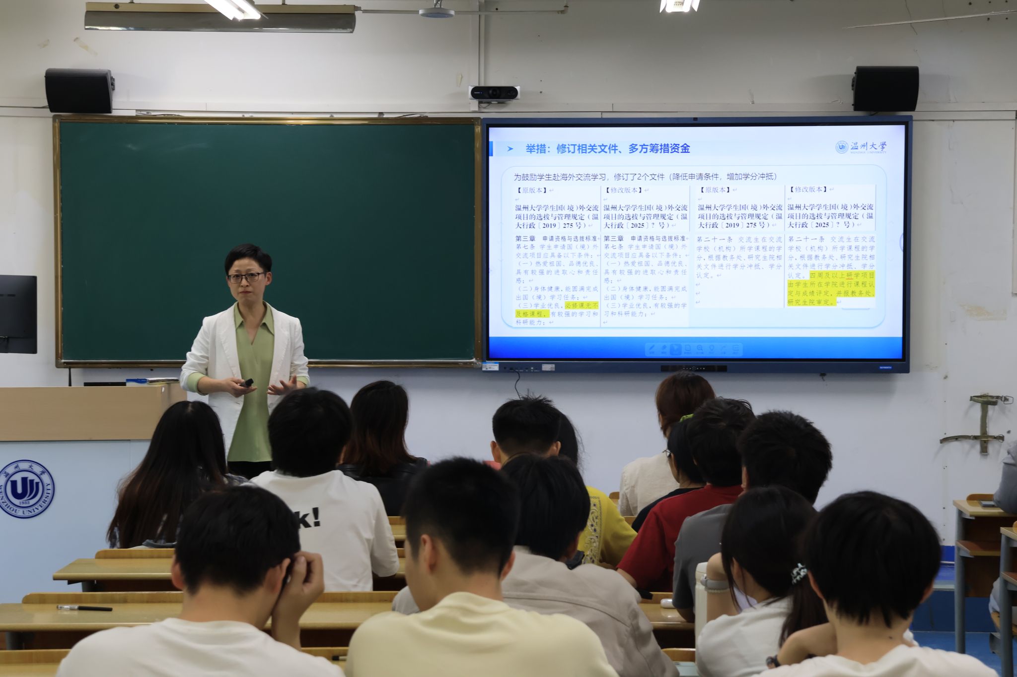 为帮助beat365在线唯一官网学生了解国外学习生活情况和我校寒暑假出国研学的项目和资助政策,拓宽国际视野,做好留学规划,2025年4月10日13:30,beat365在线唯一官网特邀请温州大学国际交流与合作处(港澳台侨办公室)陈慧处长、学院辅导员刘畅老师于5A102开展以“AI创世界·研学启新程”为主题的国际研学项目分享会。本次活动由beat365在线唯一官网党委副书记、纪委书记彭小媚主持。