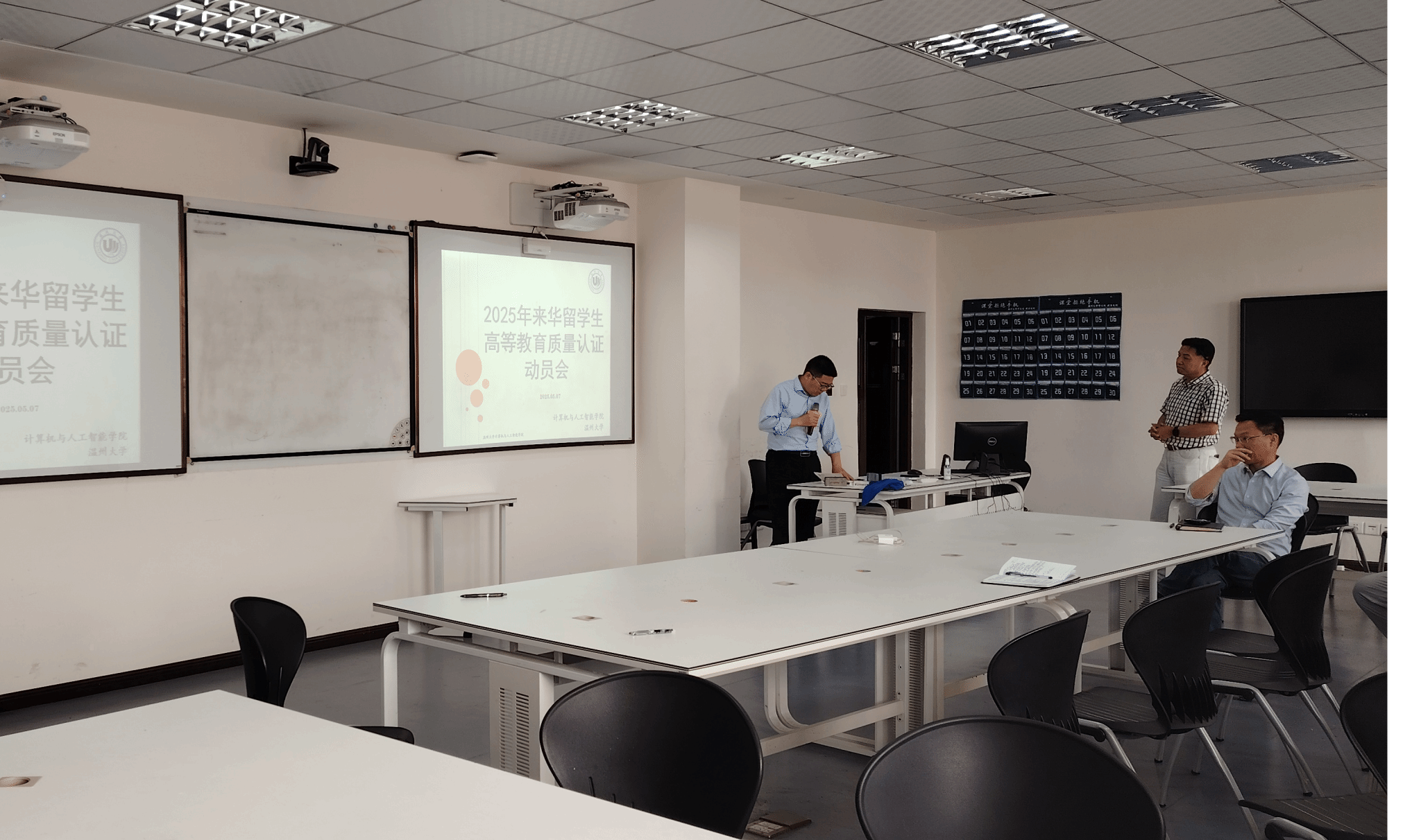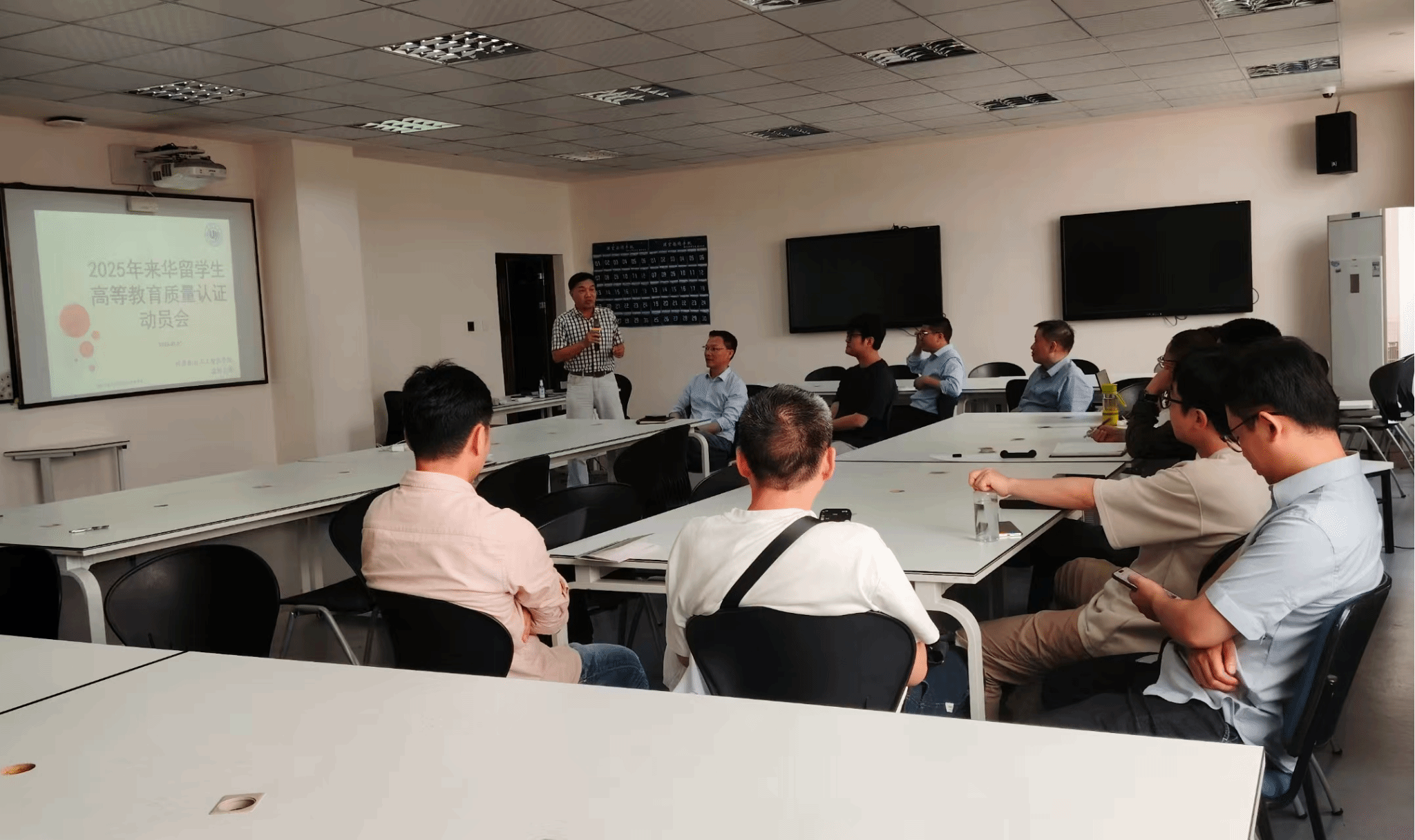 2025年5月7日下午,beat365在线唯一官网在5B206智慧教室召开“2025年来华留学质量认证迎评动员会”。学院党委书记全力、分管留学生教学工作的副院长黄辉、留学生专业主任陈恒教授及留学生授课教师等20余人参会。会议围绕认证指标体系,系统部署迎评任务,全面动员师生力量,为高质量通过认证提供保障。