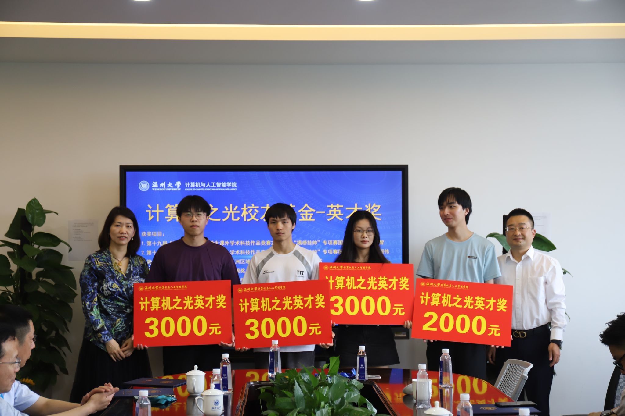 “计算机之光校友基金”颁奖典礼成为会议的一大亮点。刘智、宋阿伟等六位同学凭借在挑战杯、ICPC国际大学生程序设计竞赛等国内外赛事中的突出表现荣获“英才奖”。浙江索思科技有限公司副总经理朱忠和与学院副书记彭小媚为获奖学生颁奖。获奖学生代表王健在发言中分享了参赛心得,感谢学院和校友的支持,表示将以荣誉为动力,继续追求卓越。