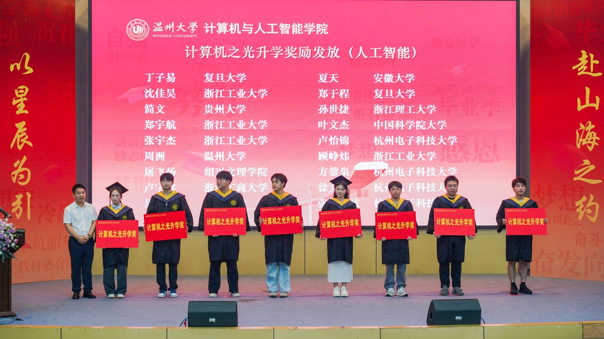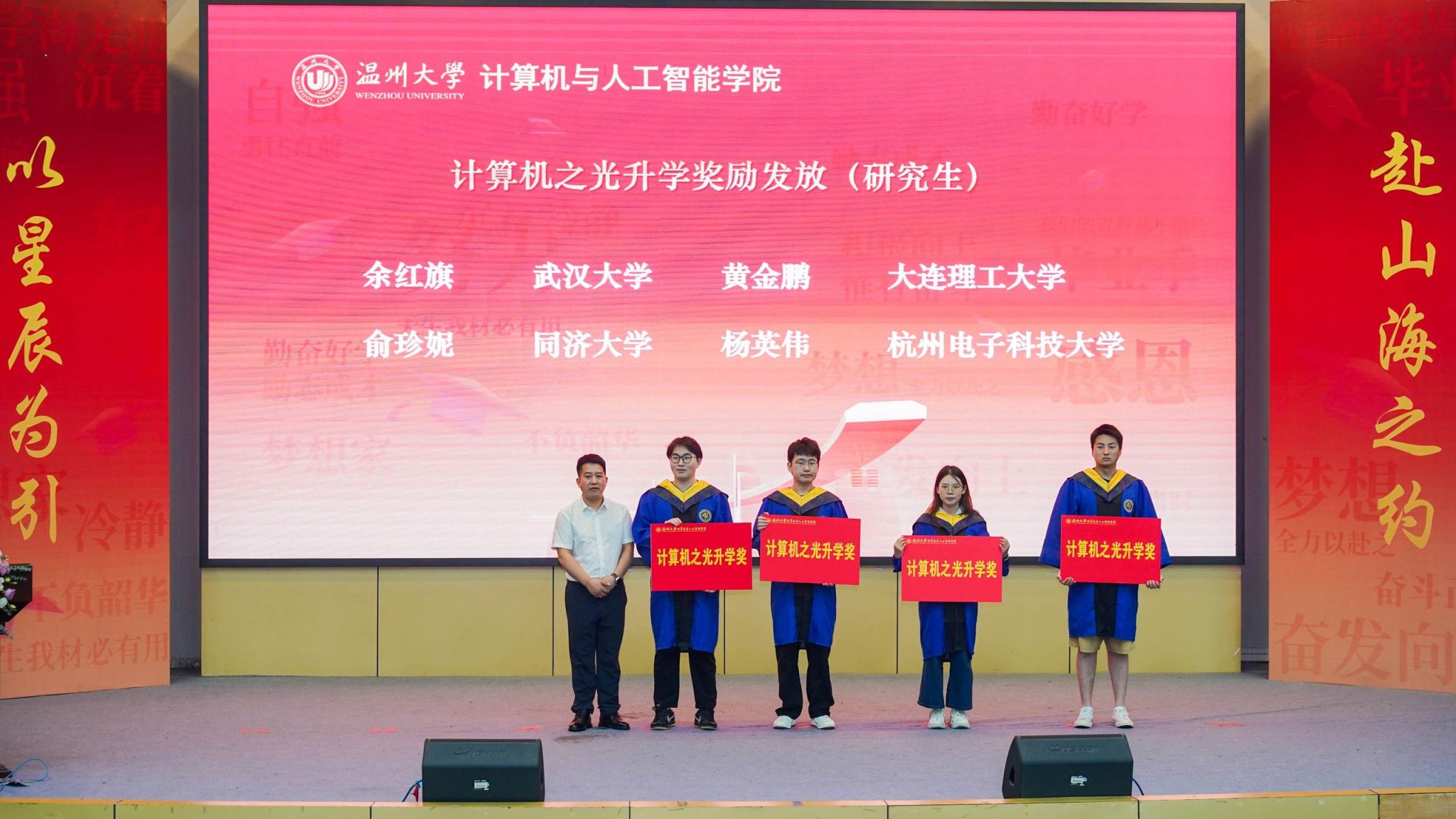优秀校友代表王国庆先生为考上硕士研究生、博士研究生的同学颁发“计算机之光升学奖”。
