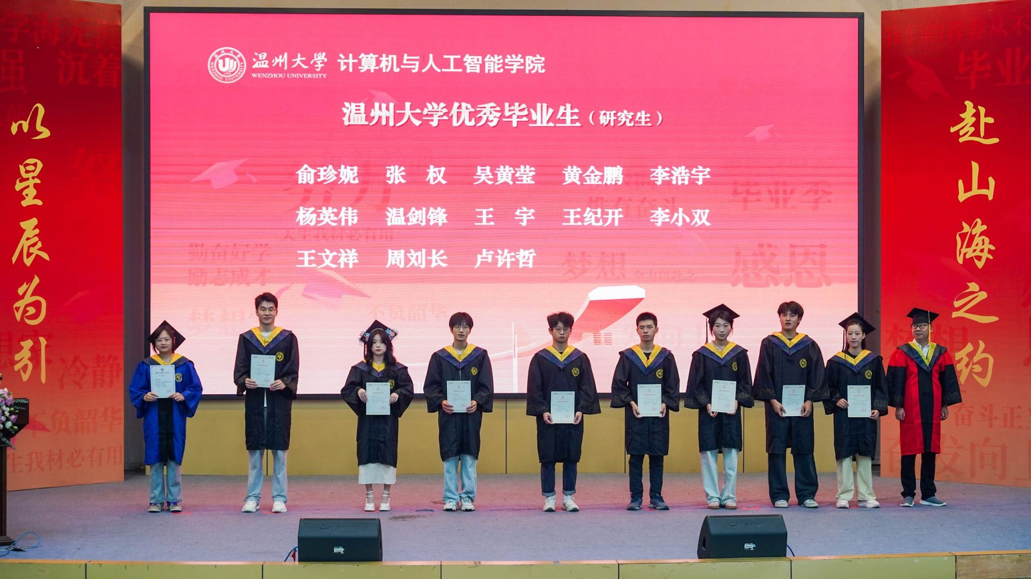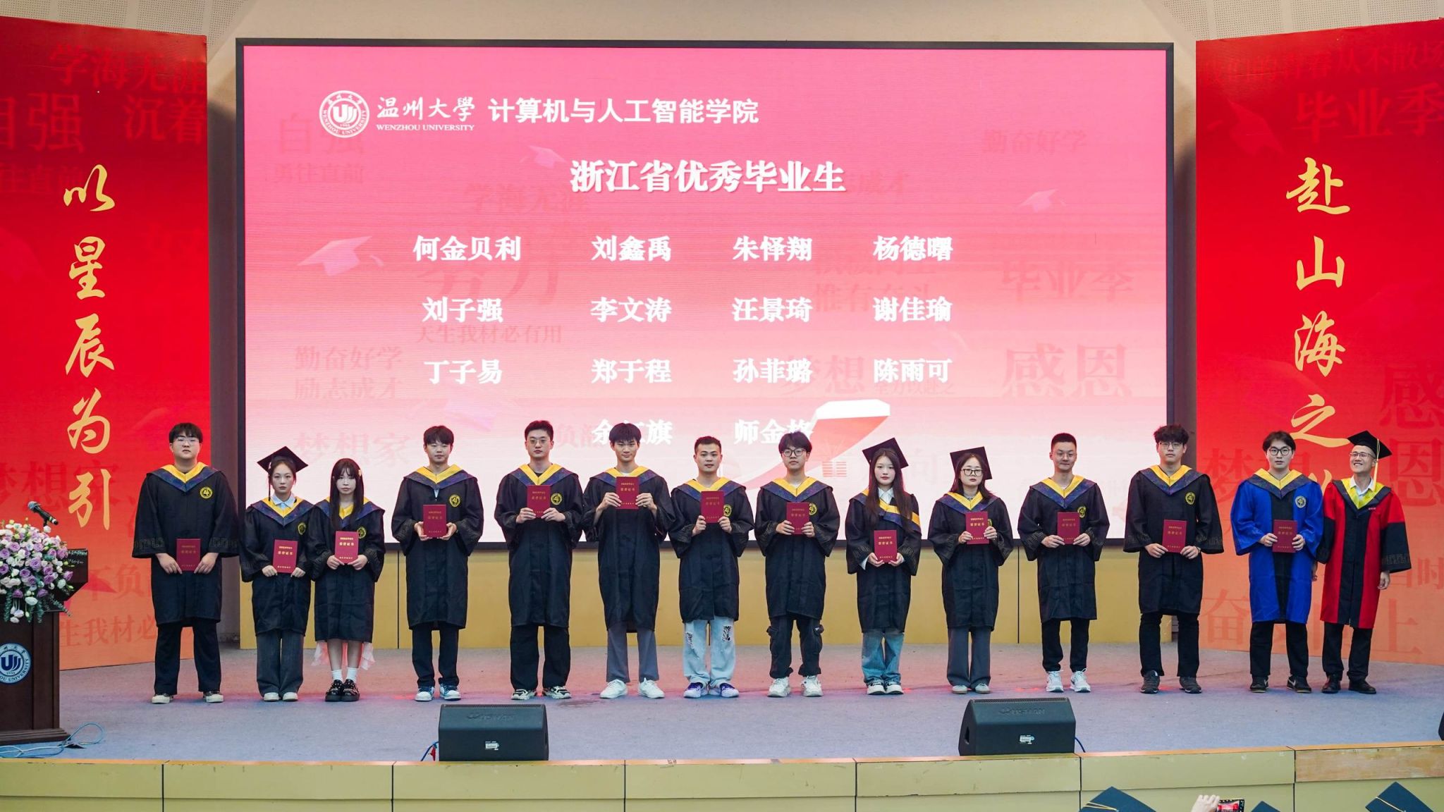 学院院长陈慧灵老师、副院长胡众义老师分别为省优秀毕业生和校优毕业生代表颁发证书,并合影留念。