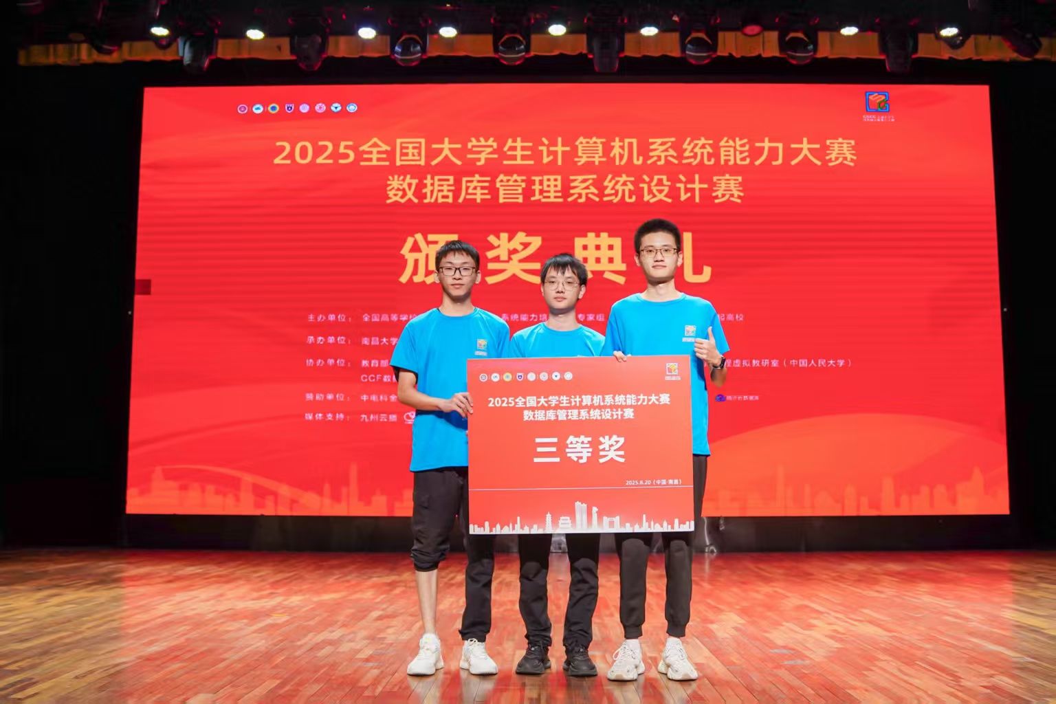 近日,2025年全国大学生计算机系统能力大赛——数据库管理系统设计赛决赛圆满落幕。beat365在线唯一官网21级王雪峰、23级徐王晶、林灏3位学生组成的“边看书边吃饭”团队代表学校首次参赛,成功入围决赛并斩获全国三等奖,实现了温州大学在该项高水平学科竞赛中的历史性突破。该团队指导教师黄长城教授荣获大赛“优秀指导教师”称号。