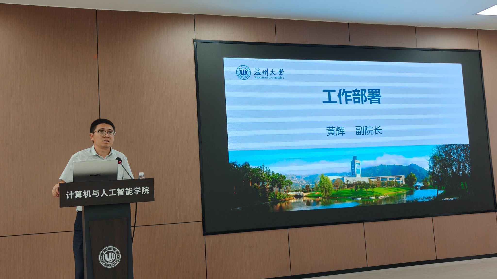 陈慧灵院长就项目申报与验收情况,以及人才引进工作进展进行了汇报。他特别提到温州大学17门课程成功入选省级一流课程,黄海广老师的《机器学习》入选国家一流本科课程。计算机学科ESI排名显著提升,论文被引次数从2021年9月的4857次快速上升至2025年7月的23527次,学科实力持续增强。