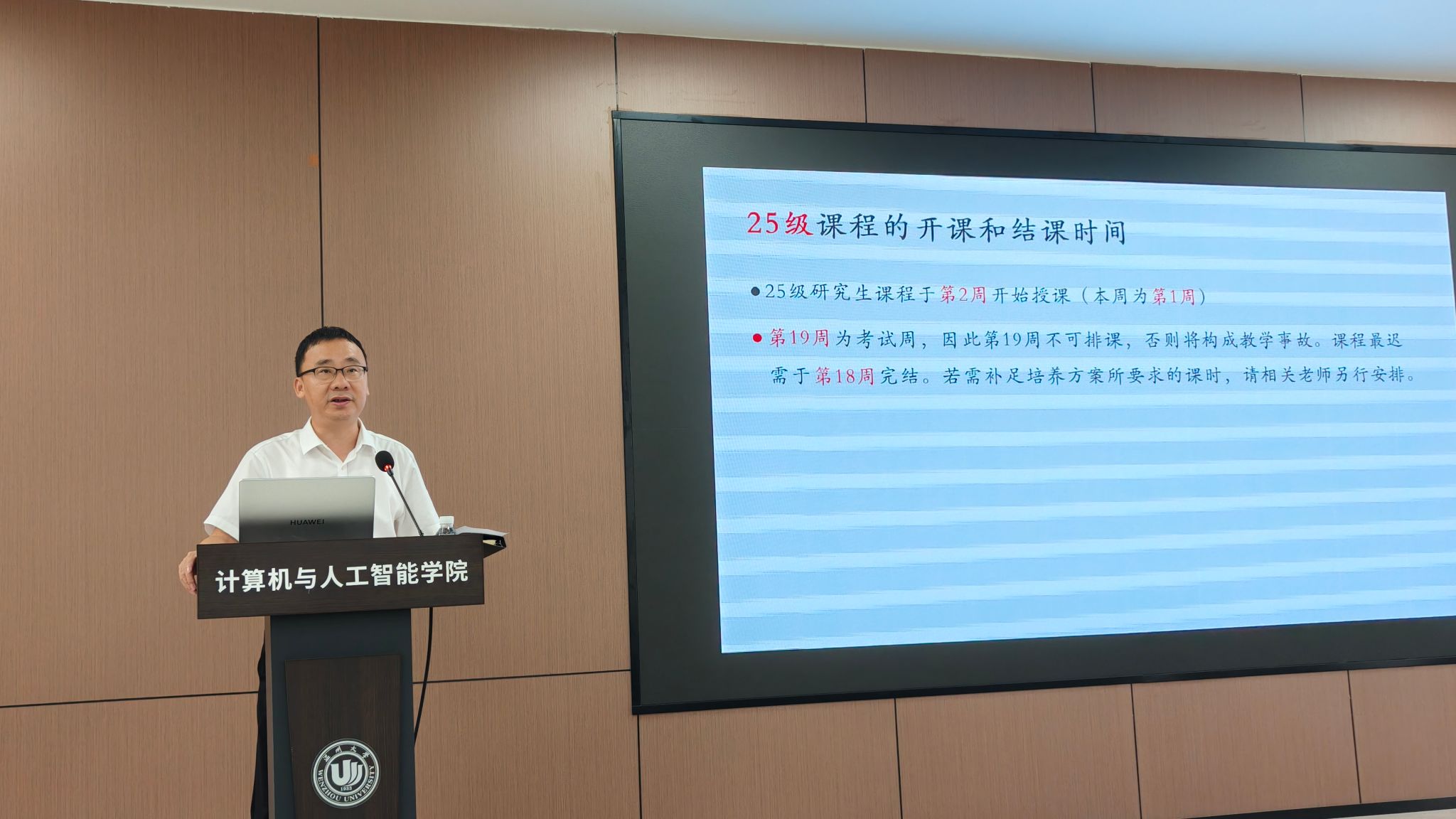 胡众义副院长就本科教学与研究生培养作出具体部署。在本科层面,他要求全体教师规范完成教学大纲提交与试卷批阅,提前备战审核评估;同时强调网络工程、计算机科学与技术、大数据三个专业须全力推进工程认证。在研究生层面,他明确了2025级课程安排与选课指导要求,并督促导师加强对24级、25级学生的学位科研过程管理,严格把关23级毕业论文质量与24级开题工作,确保培养环节有效落实。