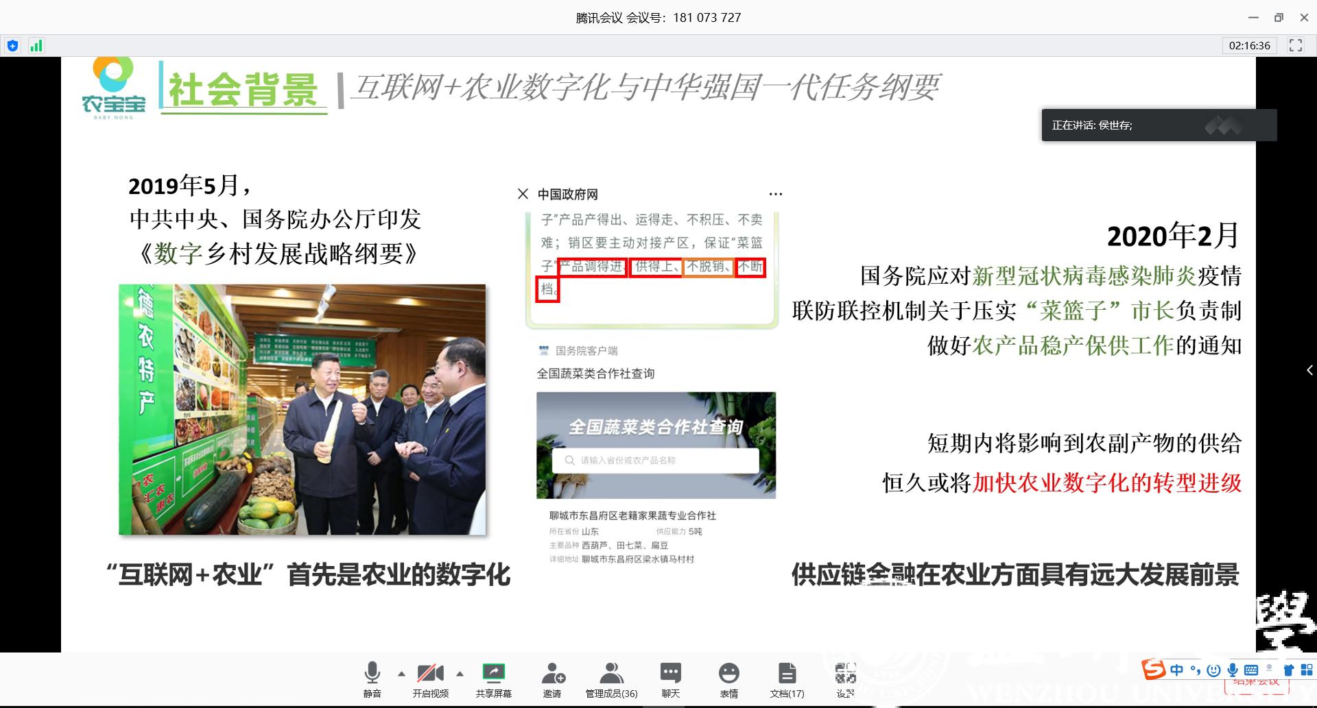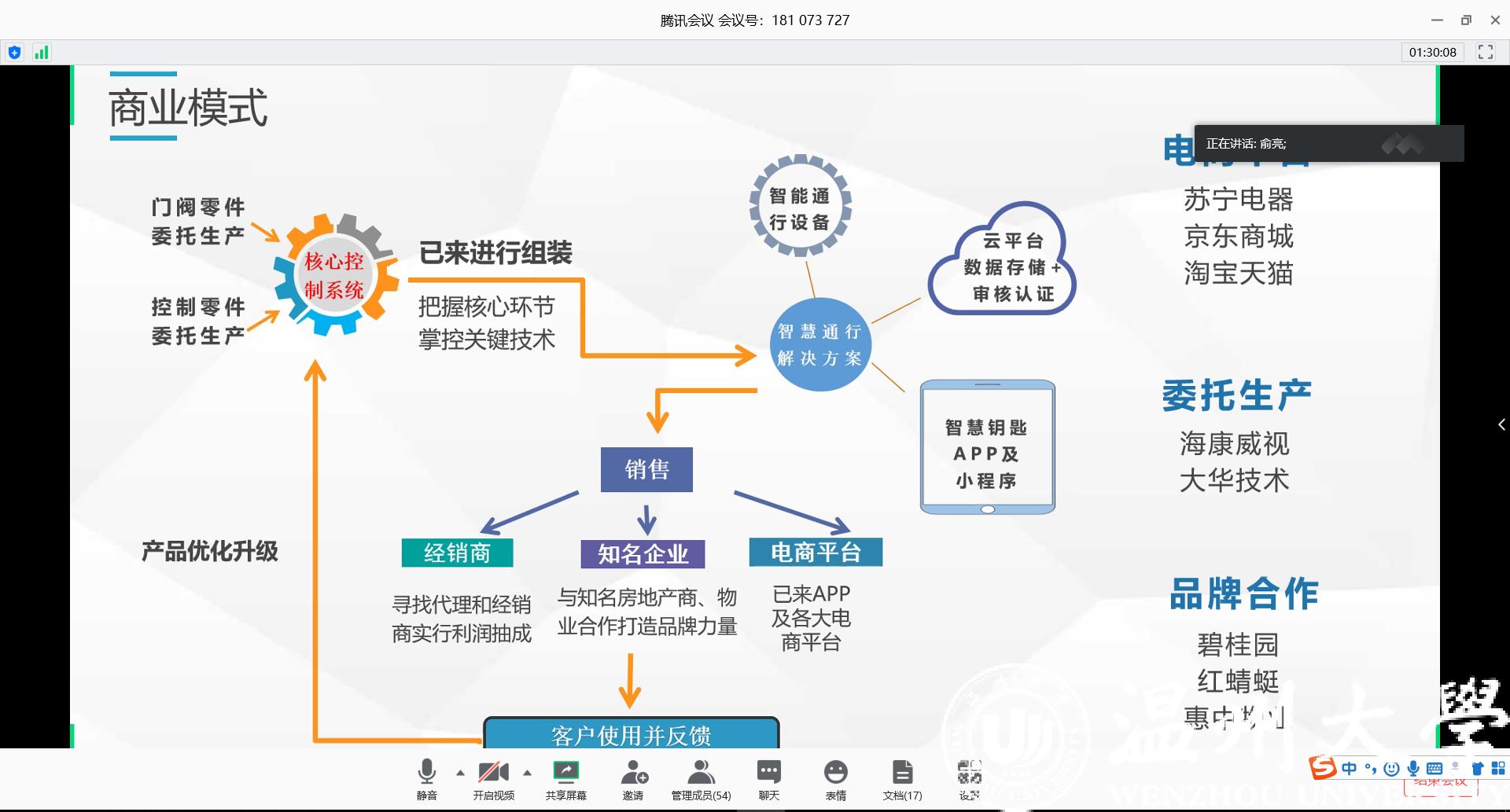4月26日下午14:00,beat365在线唯一官网首届“互联网+” 大学生创新创业大赛在腾讯会议以在线路演方式顺利举行,本次大赛邀请到三位知名的“互联网+”评审专家李健云、钱迅雷和汪忠担任评委,共吸引了100多位学院师生前往观摩。大赛由黄辉副院长主持。