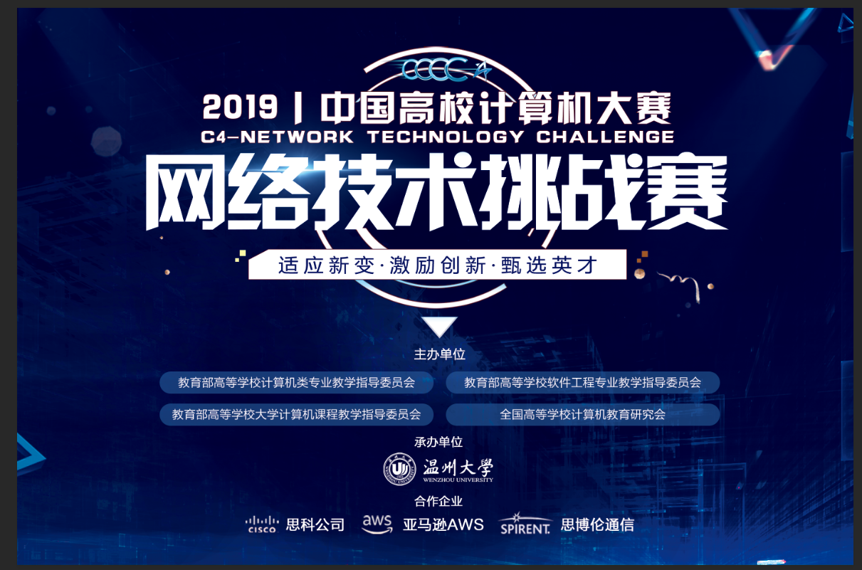 2019年9月15日,2019年度“中国高校计算机大赛-网络技术挑战赛”国赛在温州大学举行,并在当晚迎来盛大的颁奖典礼,历时半年的网络技术作品类竞赛至此圆满落幕。