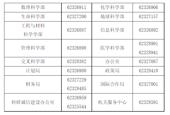 (二)各部门咨询电话。