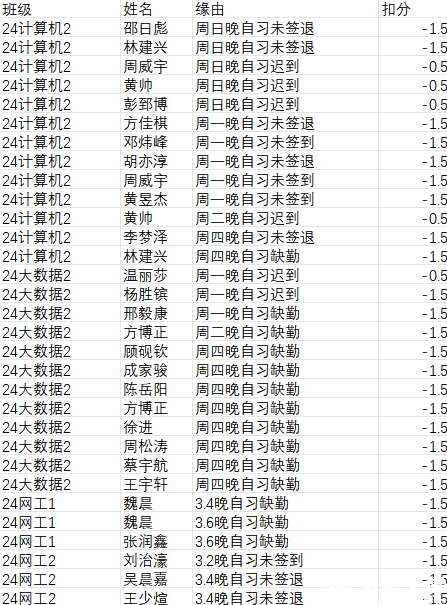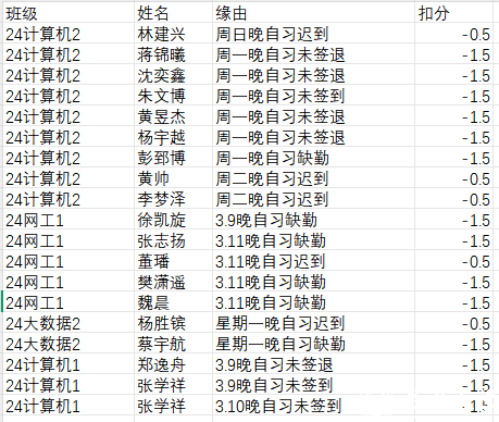 根据《关于组织开展beat365在线唯一官网2024-2025学年第一学期晚自习的通知》,旷课一节扣文明品行分1.5分,缺课一节扣0.5分(三次迟到或早退作一节旷课,生病住院等情况除外);如对考勤结果有异议请于周日17:00前反馈给学业指导部,学院学生科于次周周一进行审核,周二公布,过时反馈无效。 注:1.大学生文明品行分是我校本专科全日制在校生的必修课,六个学期合格记为1个学分。每学期基础合格分为80分,低于80分需要参加志愿者服务时长进行弥补。得分计入相应学期的学生综合素质测评中的德育基础分,纳入学生奖学金评定和入党评价体系。
