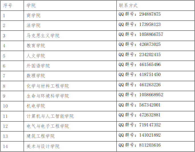 各学院已建立转专业工作专用QQ群,如下表,相关申请转入同学请实名加群,及时关注群内通知。