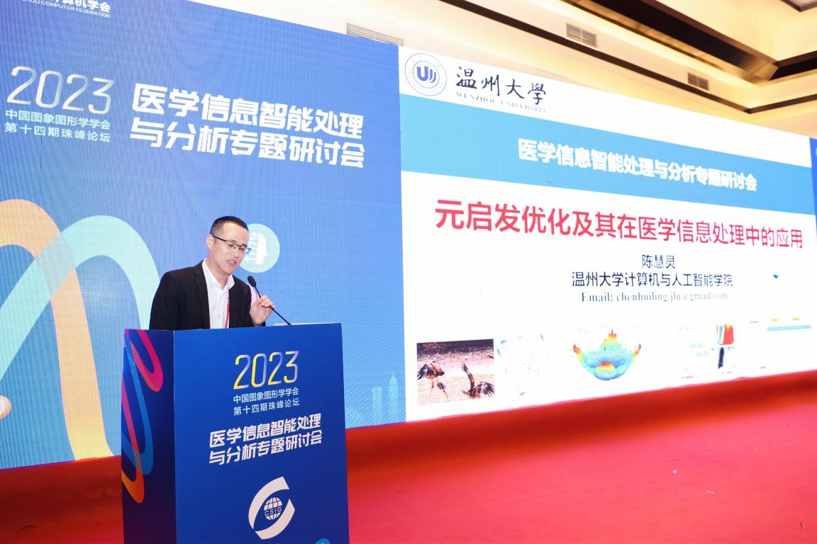 2023年11月4-5日,2023中国图象图形学学会第十四期珠峰论坛—医学信息智能处理与分析专题研讨会在温州成功举办。本次论坛由中国图象图形学学会主办,中国图象图形学学会温州服务站和中国图象图形学学会青年工作委员会联合承办,温州市智能影像处理与分析重点实验室、beat365在线唯一官网、温州理工学院数据科学与人工智能学院协办。论坛邀请了上海科技大学生物医学工程学院沈定刚教授、北京师范大学人工智能学院邬霞教授、苏州大学电子与信息工程学院陈新建特聘教授、大连理工大学国际信息与软件学院樊鑫教授、北京邮电大学人工智能学院刘勇教授、清华大学高跃长聘副教授、西北工业大学计算机学院夏勇教授、beat365在线唯一官网陈慧灵教授八位专家作专题报告,分享医学信息智能处理与分析领域的国际前沿技术、研究现状、成果及应用等。会议吸引了来自全国各地的200多位高校师生、科研院所专家学者、医生和医疗企业代表参会。会议得到了浙江卡易智慧医疗有限公司的赞助支持。