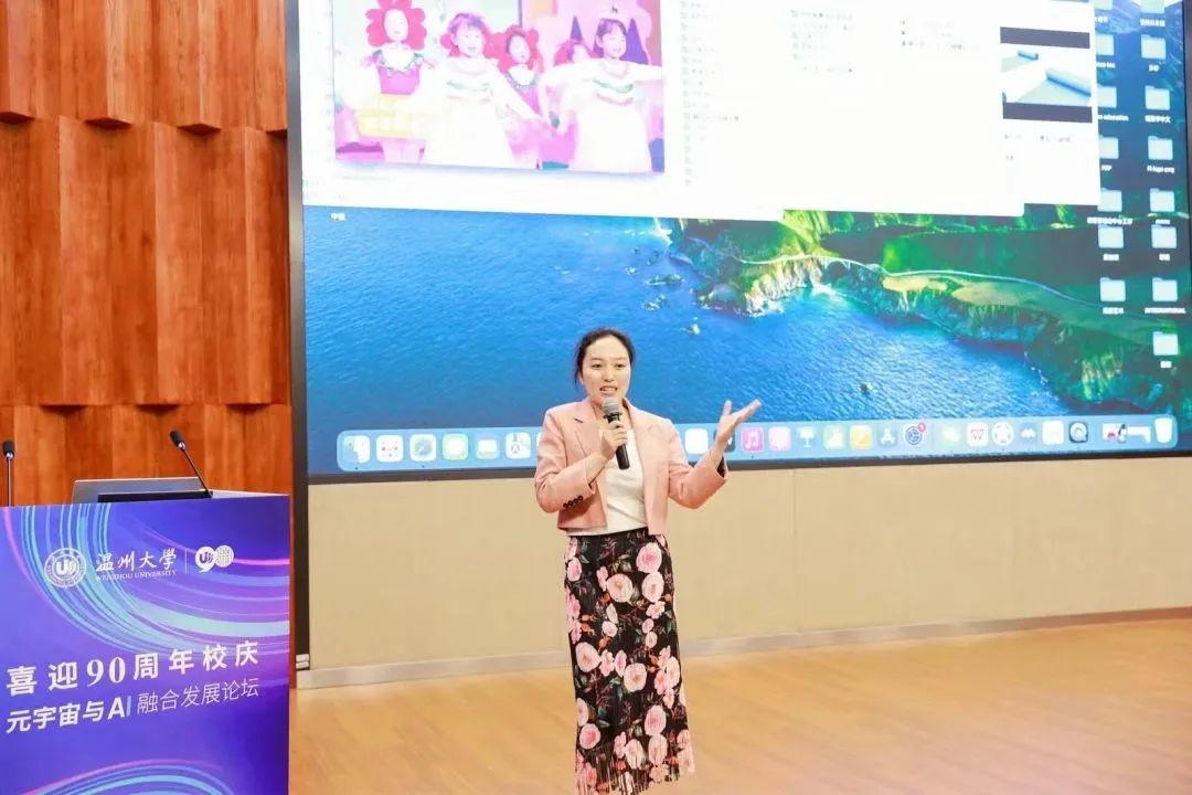 温州大学党委书记张健代表温州大学对所有远道而来的专家、学者和嘉宾表示了热烈的欢迎。他强调,在当前的人工智能时代,温州大学更应秉承校训精神,探索新的发展途径。他深信温州大学的未来发展将与元宇宙和人工智能密切相关。温州大学将加快在元宇宙和AI领域的发展,推动元宇宙、人工智能与人文、社会学科的交叉融合,实现双向发展。温州大学将充分利用其人才和平台优势,在学科交叉、人才培养、科学研究等方面推动协同创新,进一步扩大与政府、社会、高校、研究所、企业等机构的合作,助力温州大学发展,实现产业升级和高质量发展。来自北京电影学院、浙江大学、浙江虚拟现实产业联盟中国美术学院、温州大学、温州理工大学等国内元宇宙与人工智能研究领域著名业界大咖,在温州举办了一场“科学含金量”极高的高端论坛。