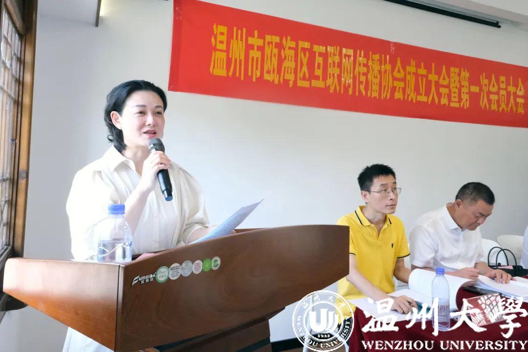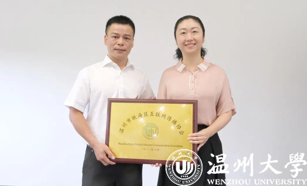 瓯海区委常委、宣传部部长孟晓晨为温州市瓯海区互联网传播协会授牌
