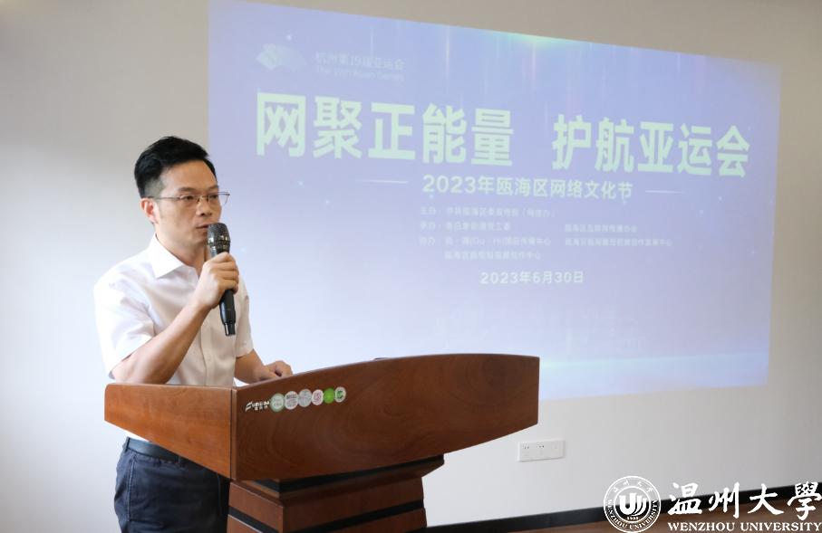 今年是学习贯彻党的二十大精神的开局之年,是杭州第19届亚运会举办之年。6月30日上午,2023年瓯海区网络文化节启动仪式举行。瓯海区委常委、宣传部部长孟晓晨,瓯海区委宣传部副部长、网信办主任林丹等参加活动。
