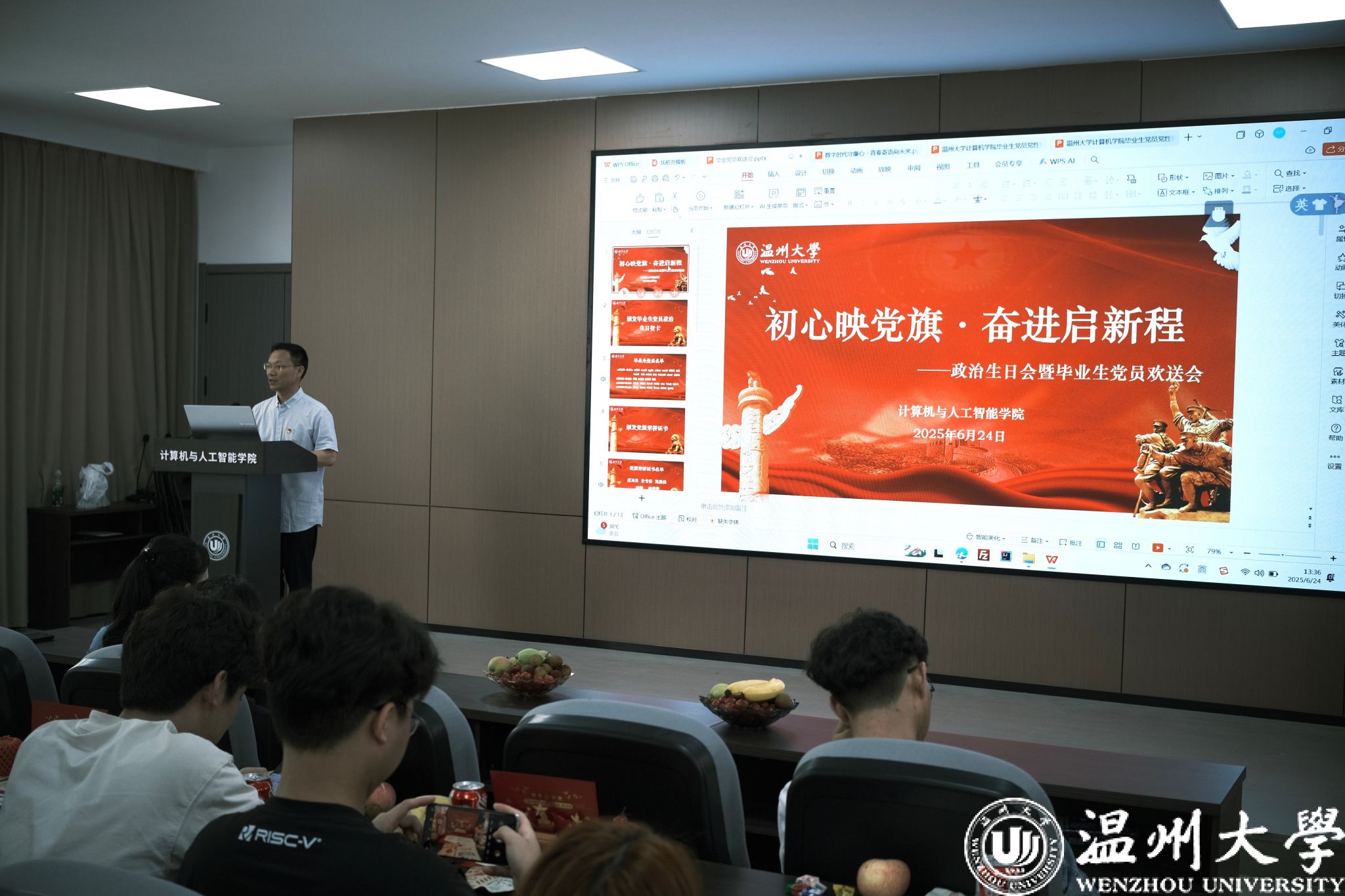 6 月 24 日,温州大学计算机学院内气氛庄重而热烈,“初心映党旗・奋进启新程” 毕业生党员欢送仪式在这里盛大举行。全院各党支部党员齐聚一堂,以赤诚之心共赴这场意义非凡的红色之约。