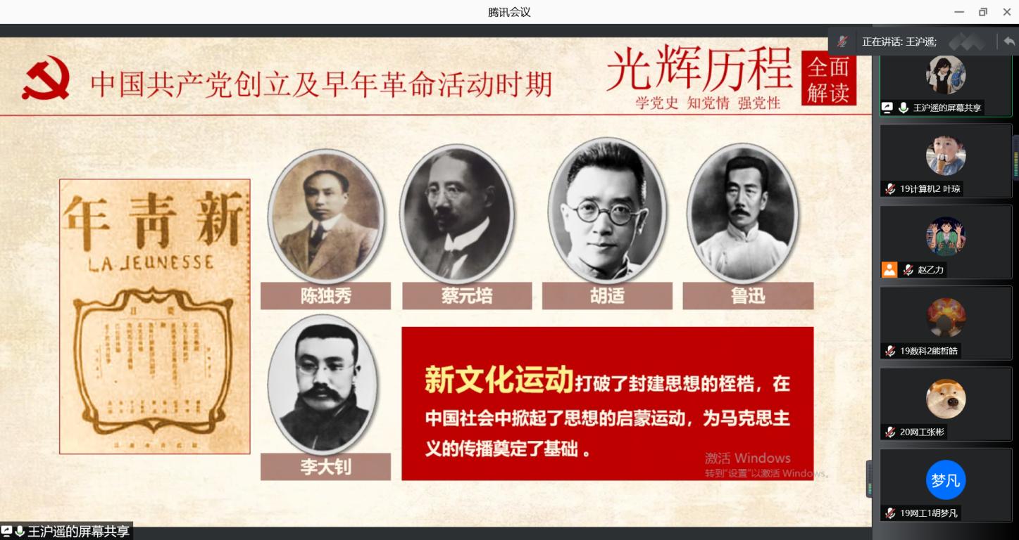 为学习贯彻习近平总书记在庆祝中国共产党成立100周年大会上的重要讲话精神,beat365在线唯一官网本科生第二党支部于2021年7月31日下午1时30分在腾讯会议上召开了学习会。此次学习会由18计算机2班王沪遥同学主持,支部全体党员以及20名入党积极分子参加。