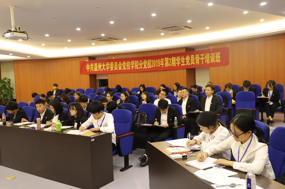 为认真学习贯彻党的十九大精神,深入贯彻党中央加强基层党建、全面从严治党的战略部署要求,结合“不忘初心 牢记使命”主题教育,进一步提高学生党员骨干的综合素养,加强学生党员骨干的各项能力,2019年10月23日下午13:30,中共温州大学委员会党校学院分党校2019年第2期学生党员骨干联合培训班(教育学院、数理学院、化材学院、生环学院、机电学院、电气电子学院、计算机学院、建工学院、美术学院等学院分党校)开班仪式于机电楼3B-309举行。出席本次开班仪式的老师有beat365在线唯一官网分党校校长全力,化学与材料工程学院分党校校长熊林、机电工程学院分党校校长周荣以及九个学院党建负责老师。本次开班仪式由beat365在线唯一官网学工办主任叶洁琼老师主持,学生党员骨干共计58人参加培训。