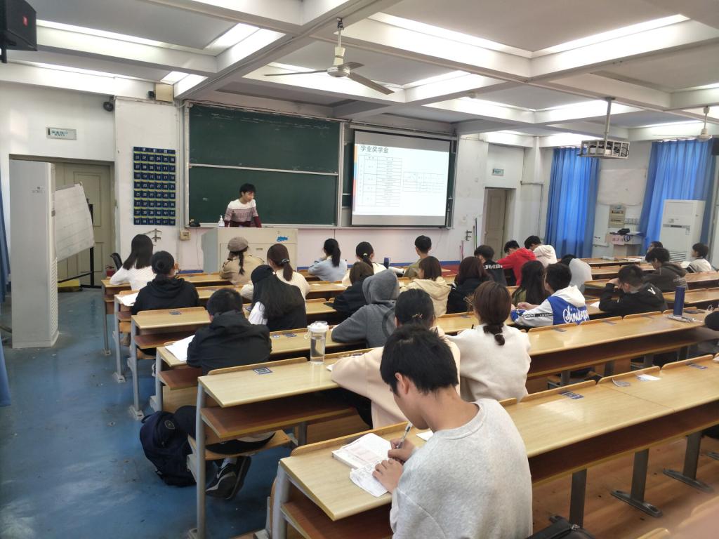 董成龙同学在5A204和304分别进行宣讲。首先,他对奖学金的类别进行大体阐述。之后,以谷超豪奖学金、三好学生和学习标兵这三个荣誉为例讲解了其评选办法,让同学们有了全面细致的了解。