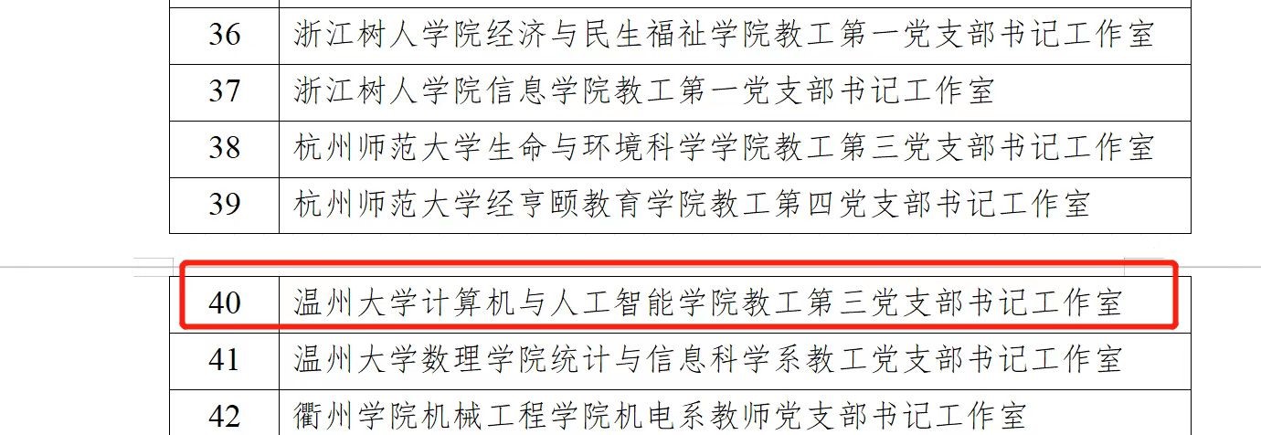 近日,浙江省教育厅公布了关于第二批全省高校“双带头人”教师党支部书记工作室评审的结果名单,beat365在线唯一官网教工第三党支部书记工作室入选,特此报喜!beat365在线唯一官网教工第三支部由大数据系部、温州大学数字经济研究院、温州市大数据技术研究院联合成立于2019年9月,支部现有正式党员15人。在党员教师的带领下,19级学生考研、科创、教研教改方面持续向好。19级学生考研上线率在学院排名第一、省级一流课程2门、十四五教改项...